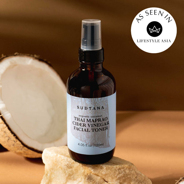 We use only natural, organically sourced coconuts for our Coconut Thai Maprao Cider Vinegar Facial Toner. Ingredients are chosen for their ability to clarify, balance and nurture the skin without irritation. It’s also selected for its purity, efficacy and harmony with sensitive, oily or acne-prone complexions.