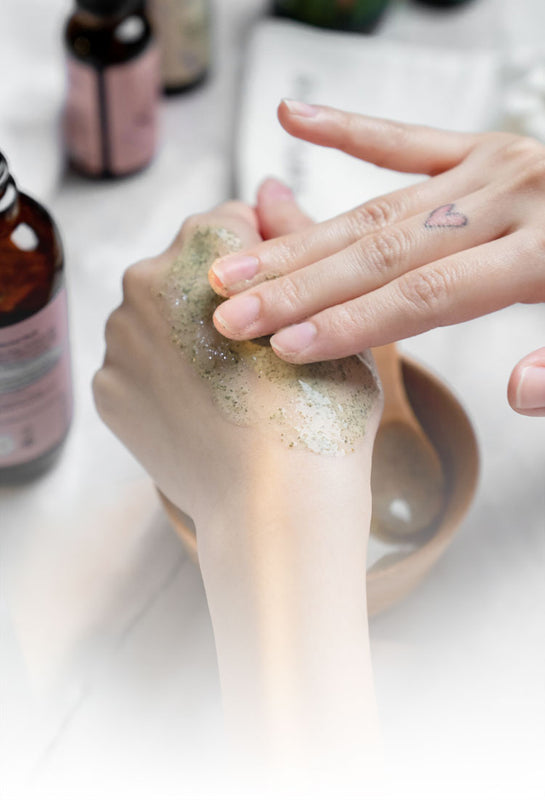 - Keep the mixture wet by adding water or spritzing the Wildcrafted Botanical Mist** onto your face periodically for best results