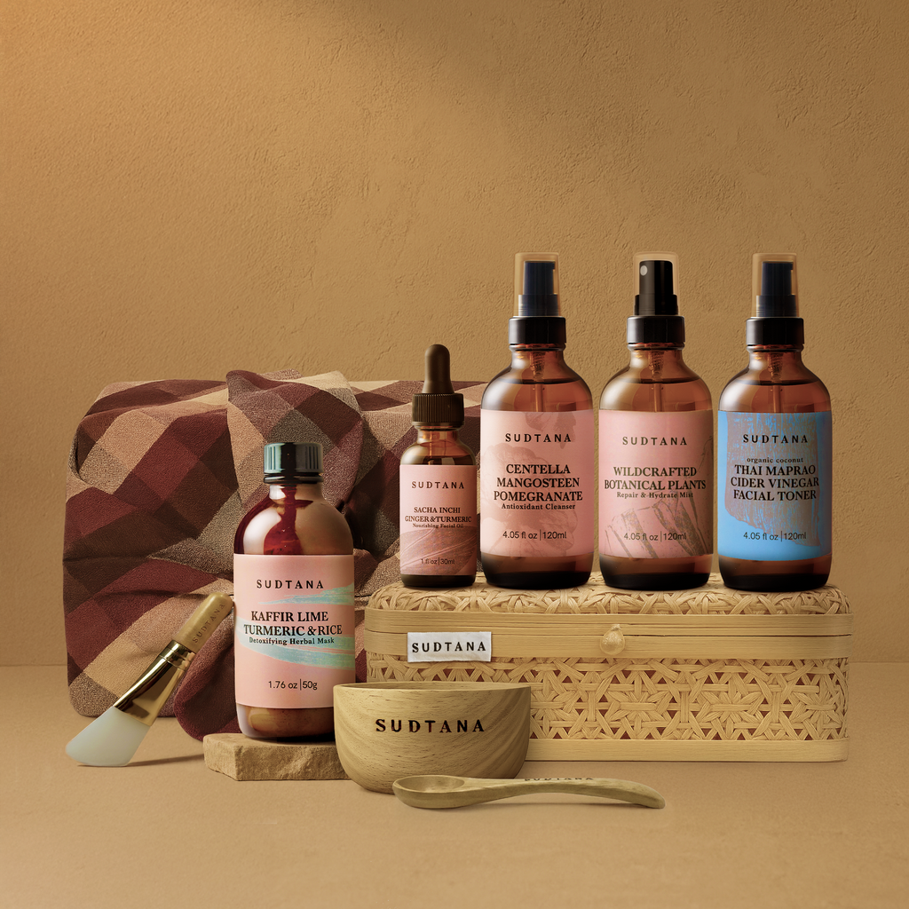 Our secret to ageless beauty, where ancient Thai botanical wisdom meets cutting-edge skincare science. This ritual starts with our gentle detoxifying cleanser, follows with our pH balancing toner, followed by our deeply purifying facial mask, and finishes with our instantly hydrating rejuvenating facial mist. Each product works together to refine, renew, and restore—night after night.